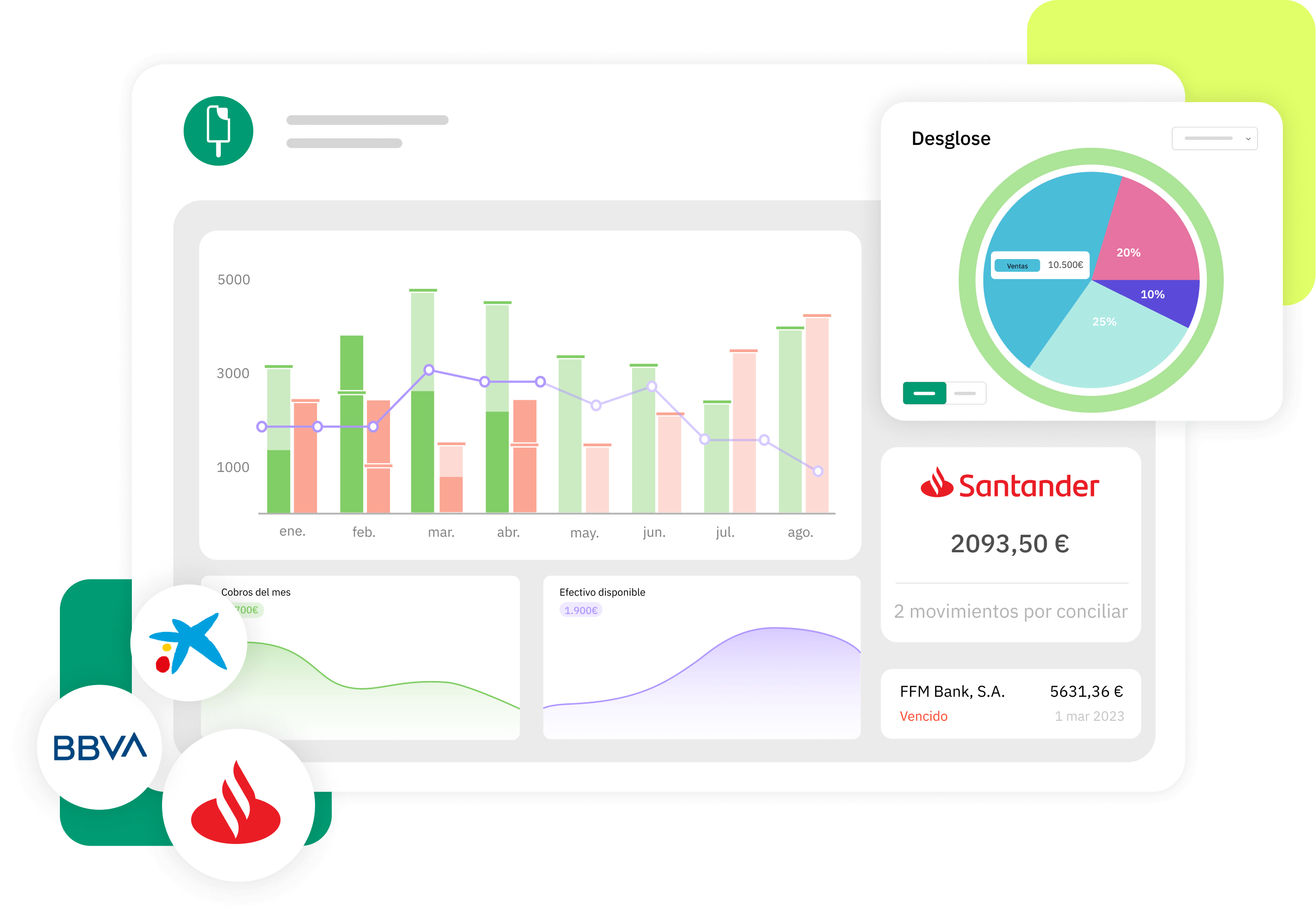 La sincronización automática de tus movimientos bancarios y su categorización te permiten ahorrar tiempo y ser más eficiente